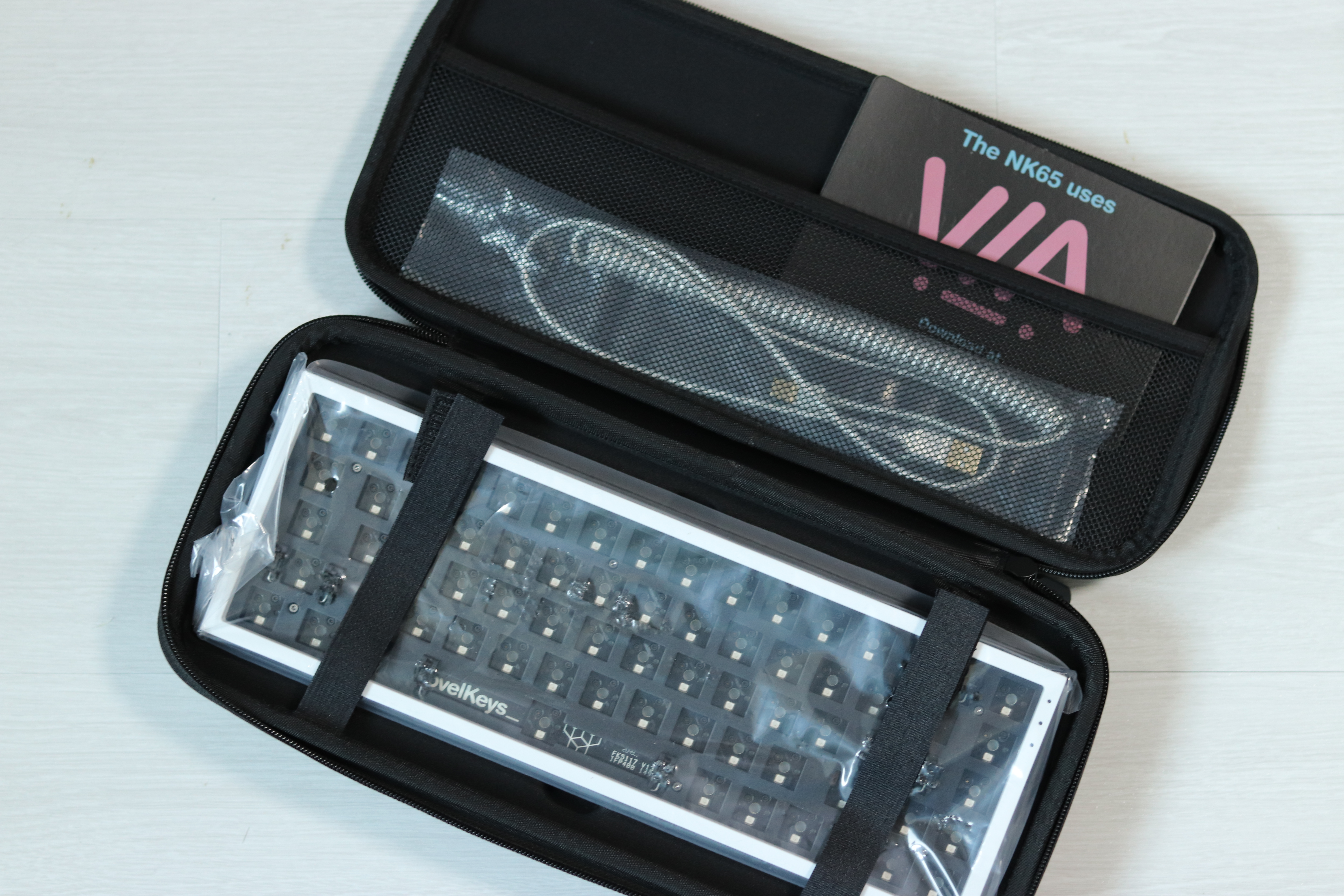 NK65를 받고 박스를 뜯으면 위와같이 파우치가 하나 똑 나옵니다. 걷보기에는 그냥 천 파우치지만 내부에는 망치만큼 무거운 키보드가 자리하고있습니다. 이 파우치만 사겠다고 난리가 날 수준으로 파우치사면 키보드를 주는 퀄리티입니다. 최근에는 많은 키보드 공동제작 구성품으로 포함되어있지만 예전에는 그렇지 않았으니까요.