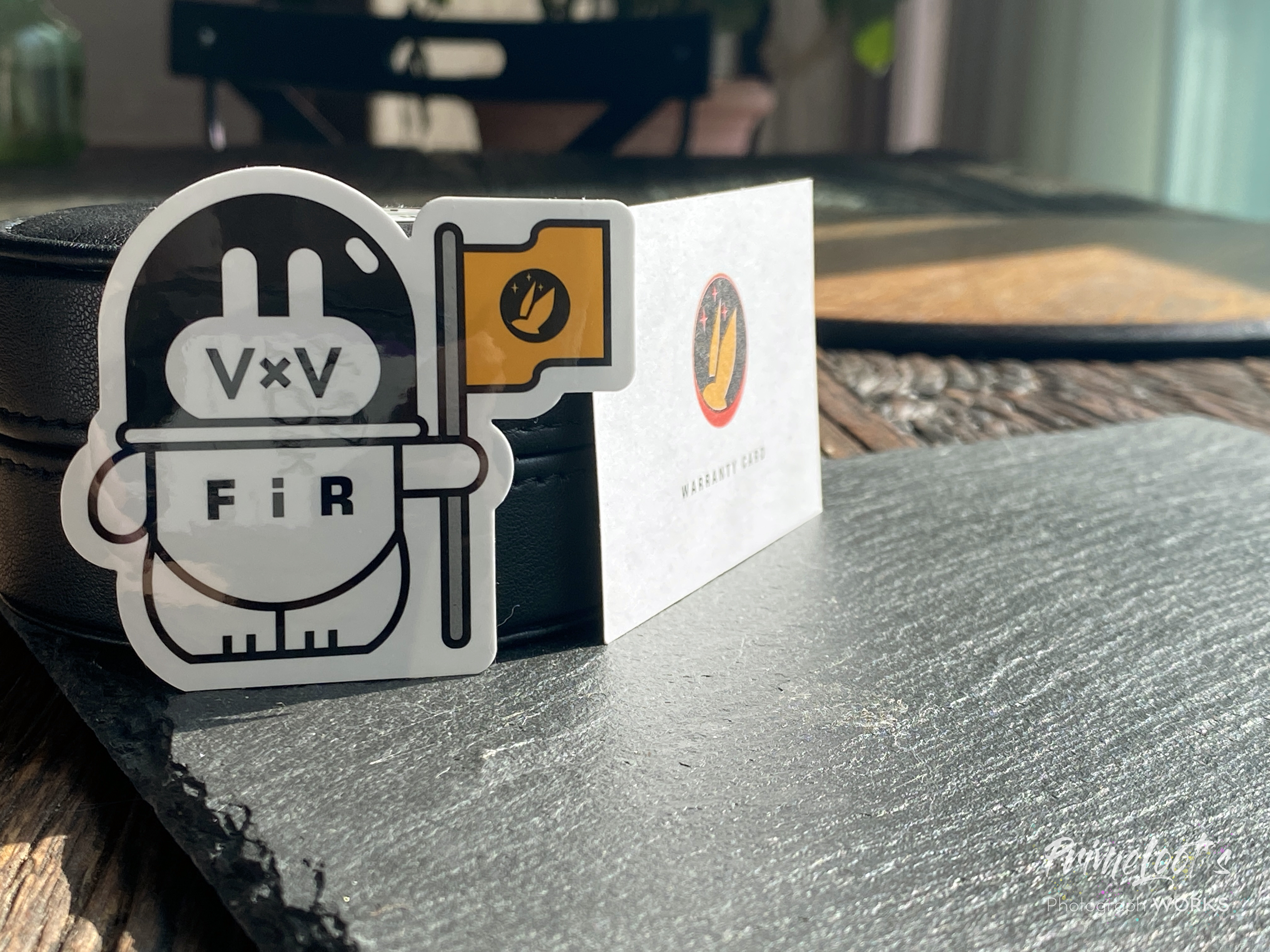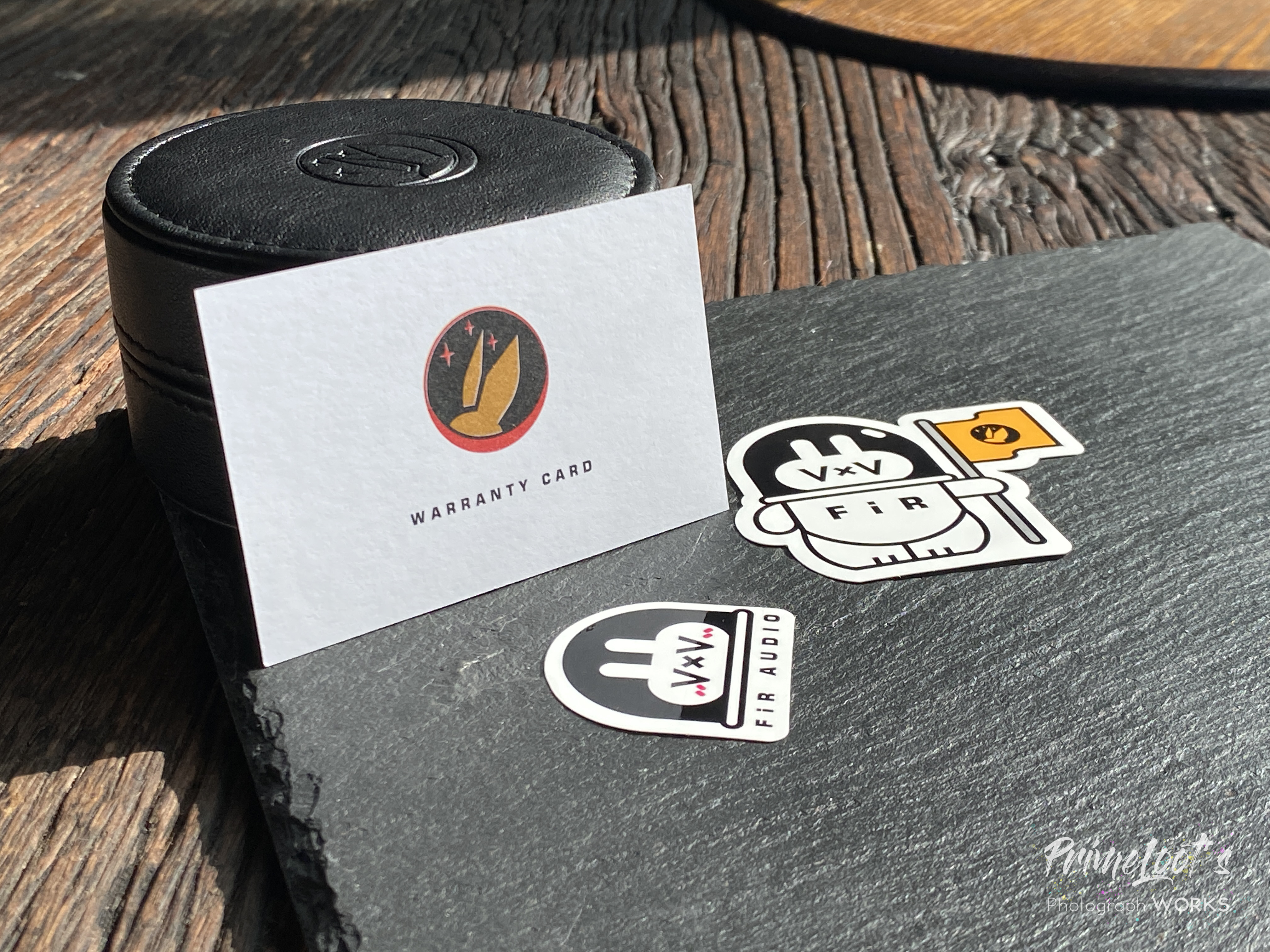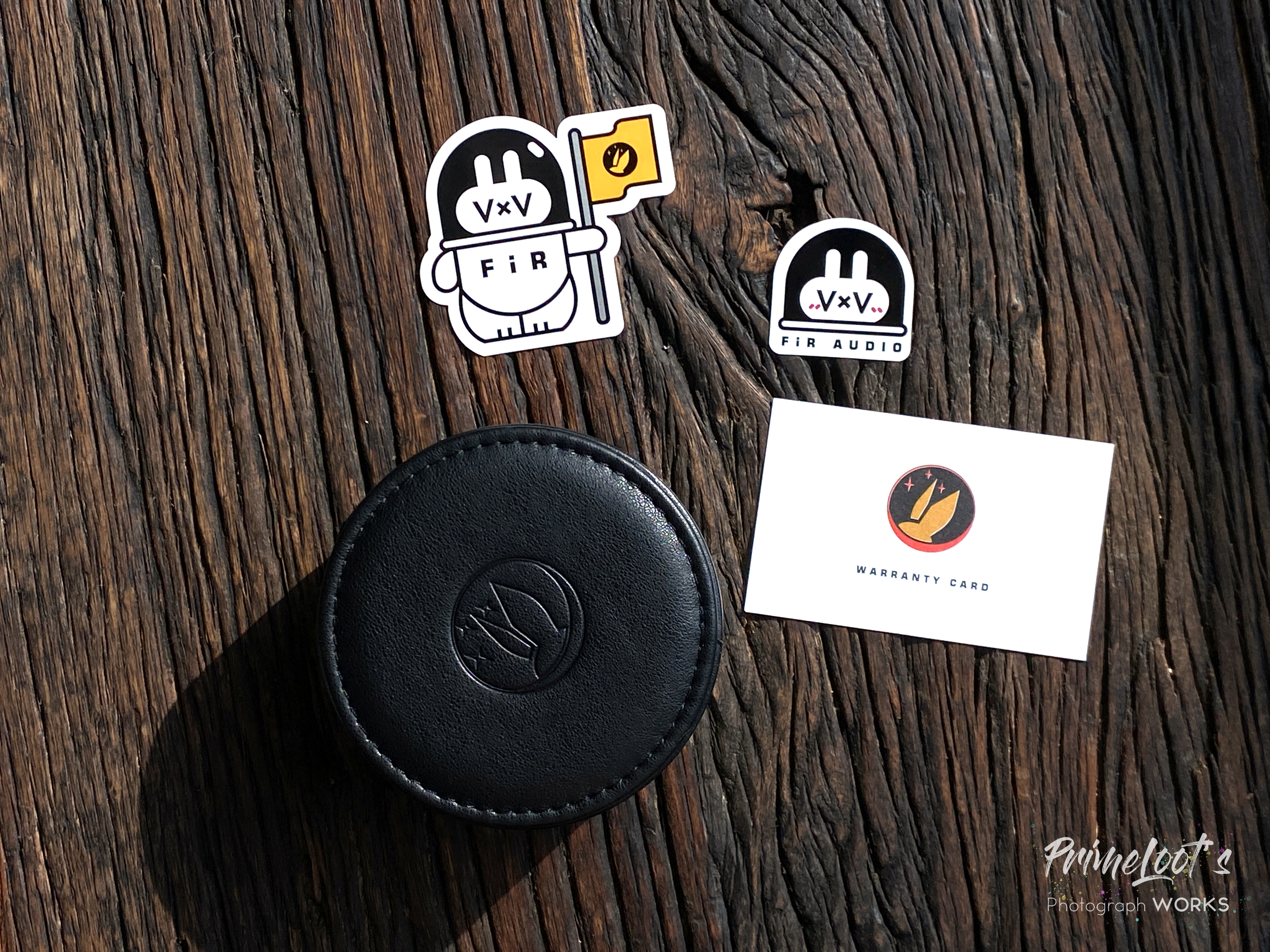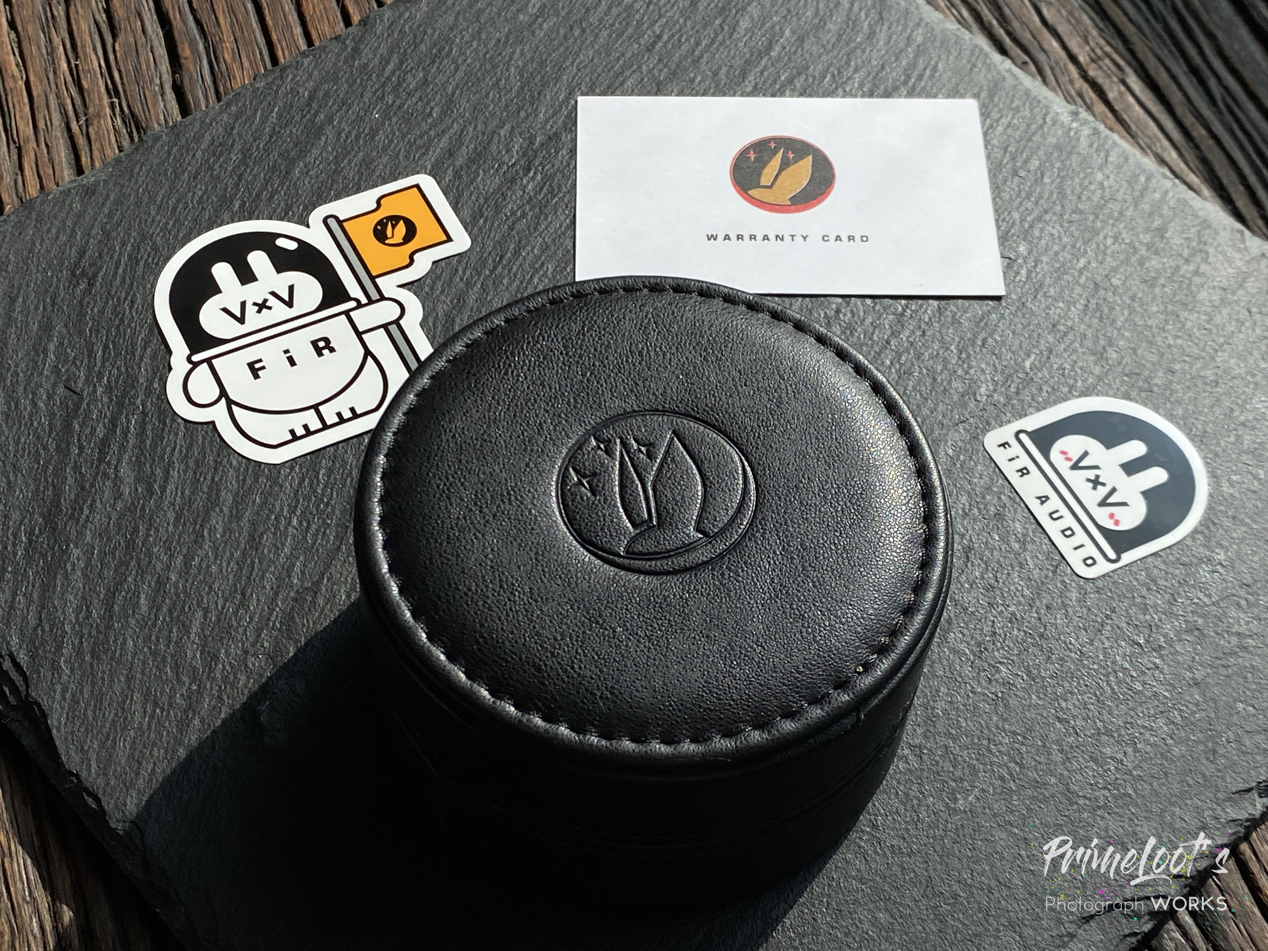 박스를 처음 개봉하면 실로 간단한 구성품입니다. FiR의 토끼 로고가 그려진 상당히 고품질의 가죽 케이스가 있습니다. 케이스 아래는 Firry의 귀여운 스티커가 포함되어 있습니다.