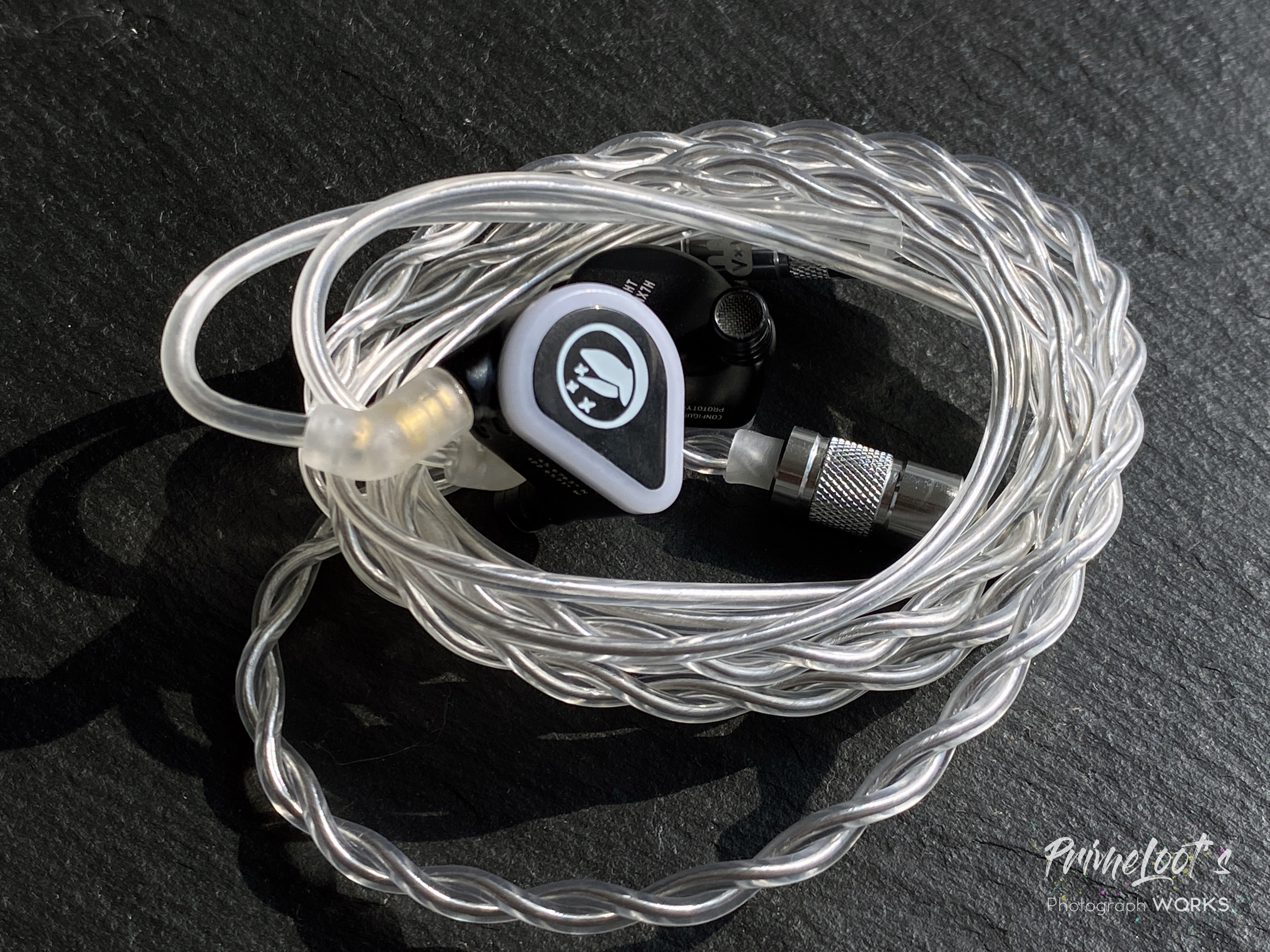 모토를 제외하더라도 구성품이 "나는 음감용 제품입니다"를 외치는 걸 찾아볼 수 있습니다. 이어폰 케이블 부터 대중적이고 호환성이 높은 3.5mm unbalnced 단자를 포기하고 2.5mm balanced TRRS 단자를 기본으로 제공함으로써 기존 M 시리즈처럼 프로용은 아닌 느낌을 물씬 풍기고 있습니다. 또한 케이블의 선재는 은도금 구리선으로 가장 대중적이고 표준적인 재질로 선택되었습니다.