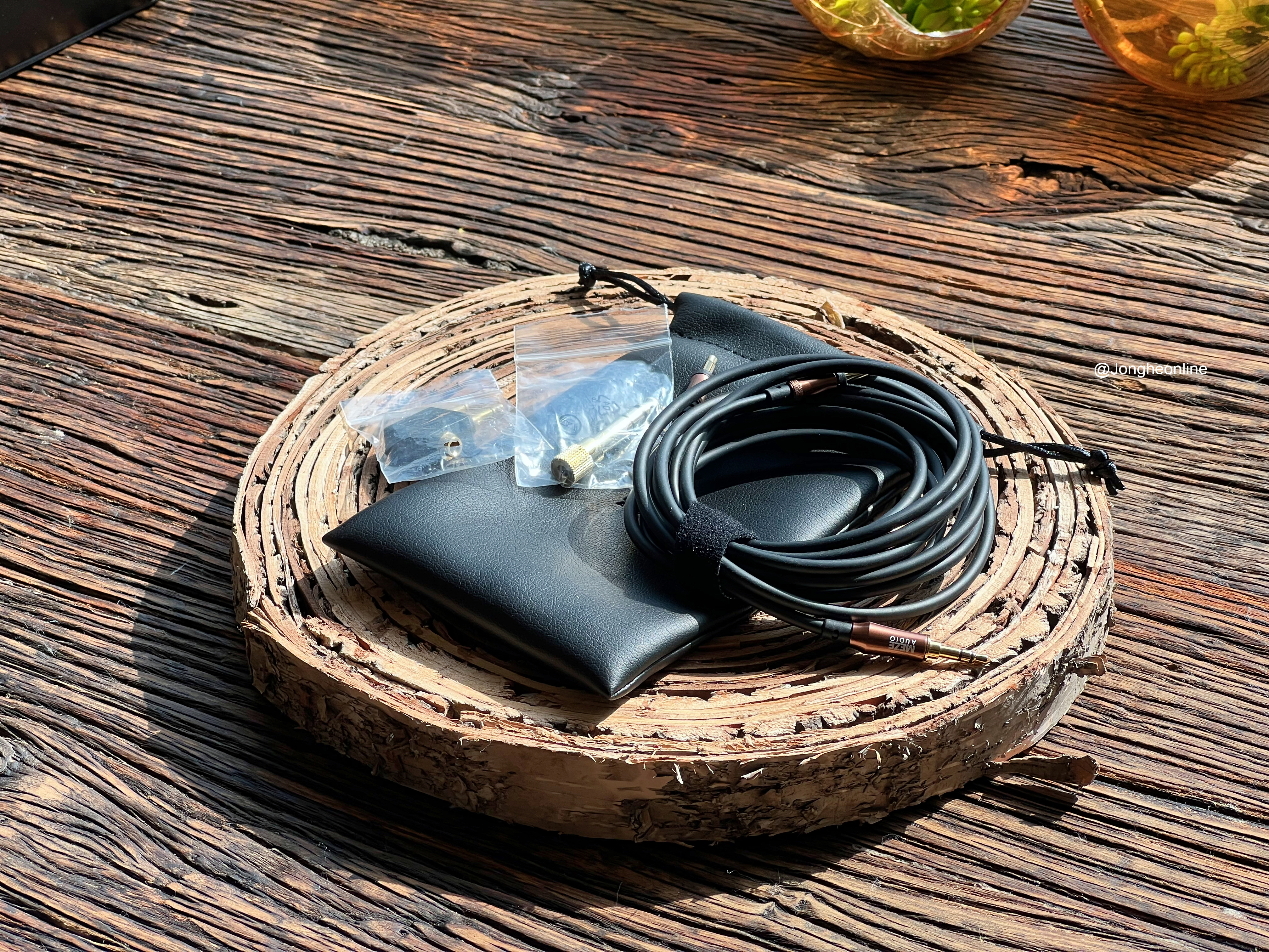 가죽 파우치 안에는 긴 케이블, 6.3mm 젠더, 항공기용 어댑터가 포함되어 있습니다. 하이엔드 포터블을 타깃으로 잡아 만들어진 만큼 항공기용 어댑터가 포함되어 있습니다.