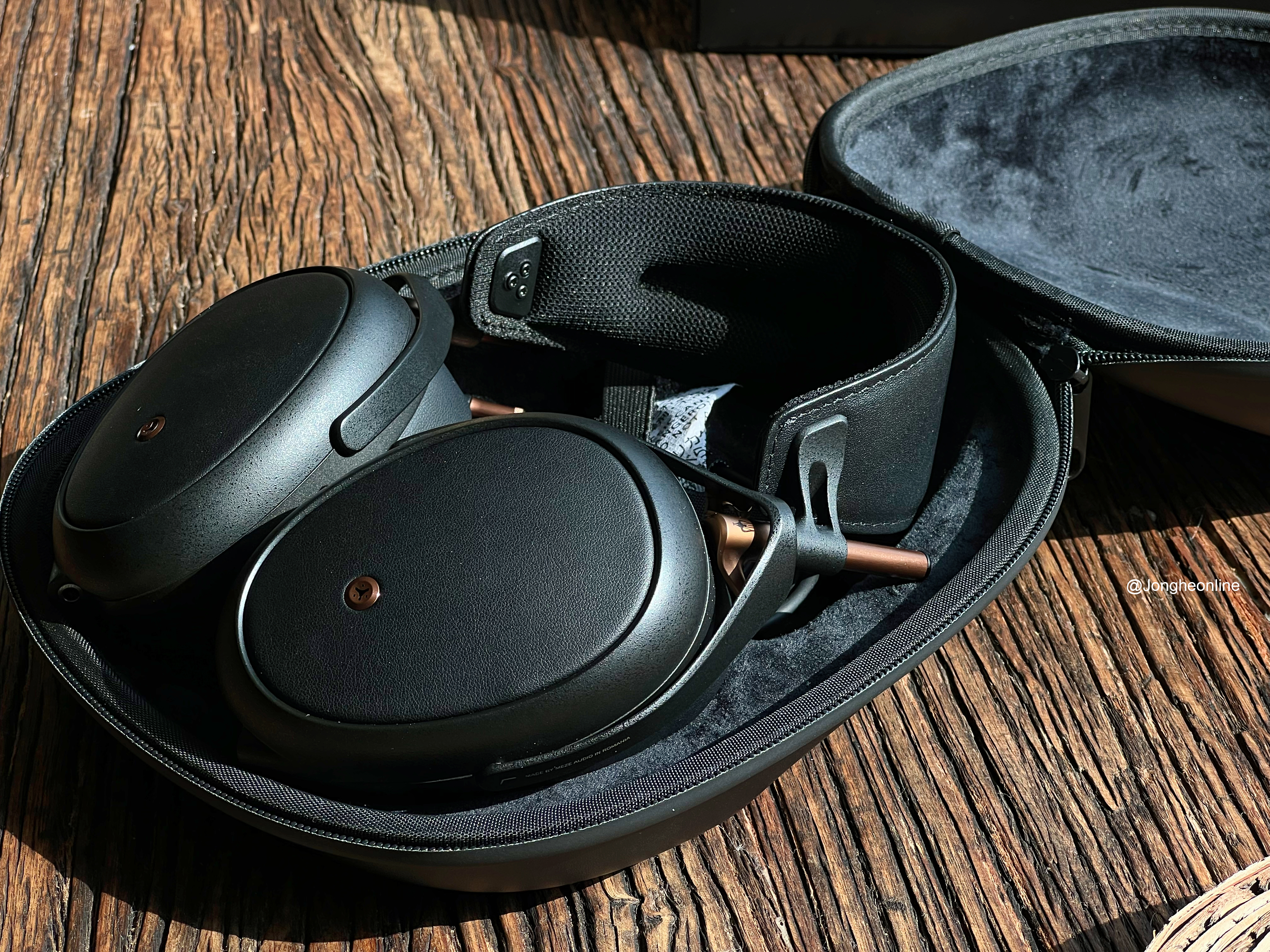 헤드폰의 겉면은 마그네슘, 알루미늄, 스틸, 가죽으로 이루어져 있습니다. 헤드폰을 착용할 때 만지게 되는 이어 컵 부분들의 촉감, 경험에도 신경 씀이 느껴집니다. 가죽이 극한의 부드러움을 느끼게 해 주며 구조가 상당히 특이함에도 금속의 견고함이 느껴져 안정감을 얻을 수 있었습니다. 이거 좀 무서운데? 싶지만 실제로 사용하다 보시면 정말 견고한 금속 간의 움직임과 가죽의 부드러움에 큰 만족을 얻으실 수 있을 겁니다.