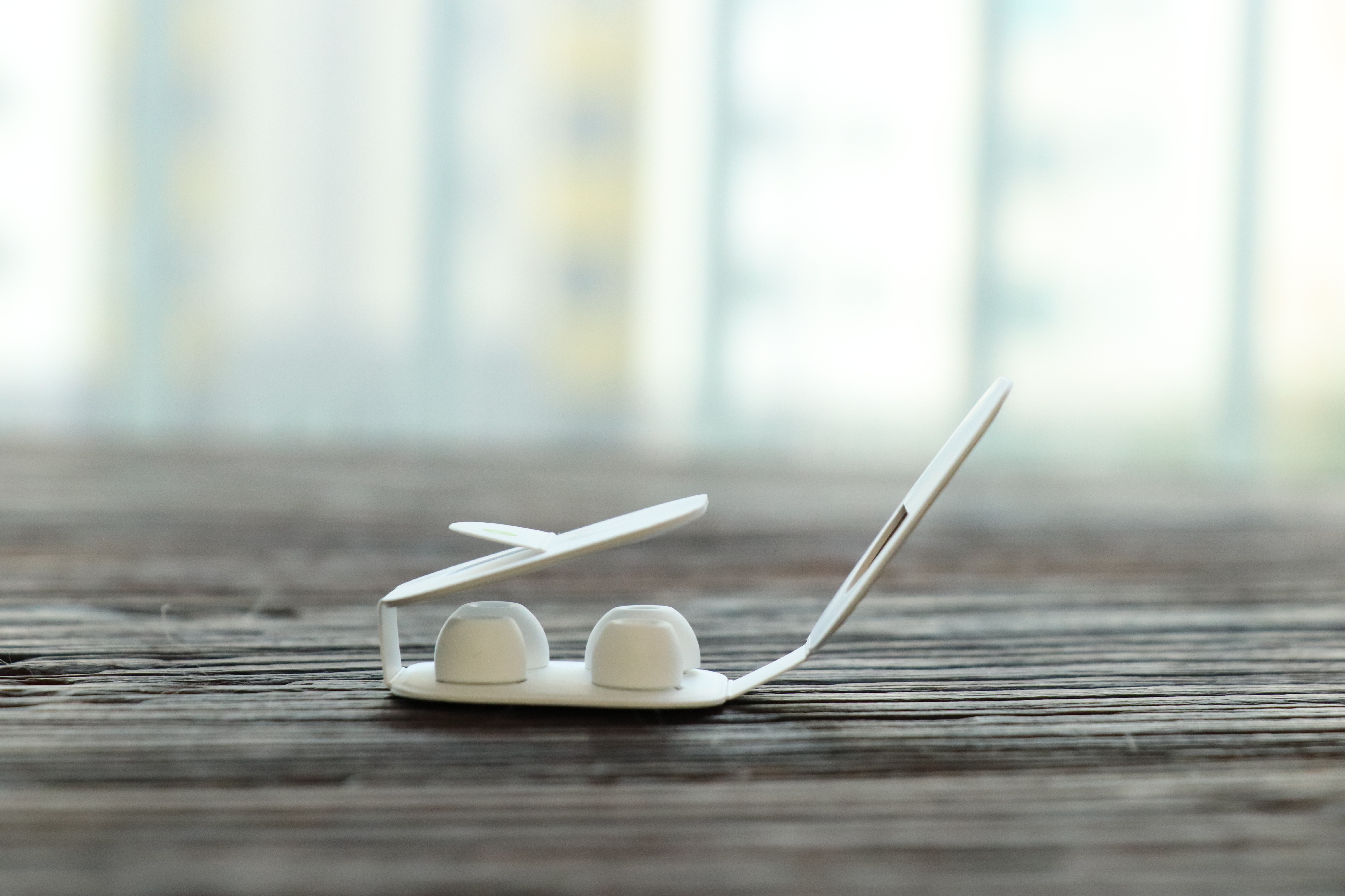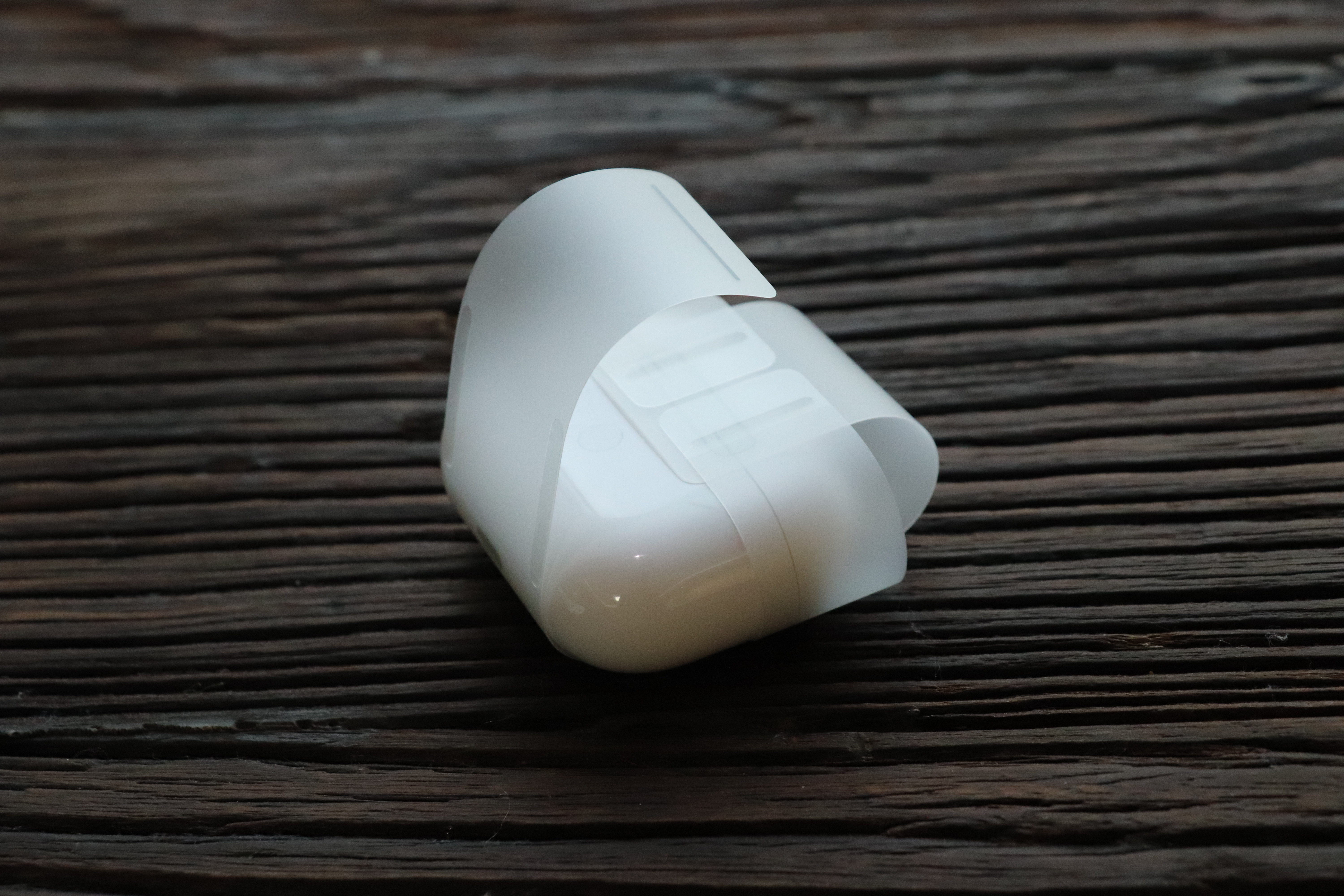 본체입니다. 전 세대들과 같이 약한 플라스틱으로 제작된듯 합니다. 기름 먹인 나무 위에서도 기스가 조금 생기려는걸 보면 무서워서 케이스는 필수로 보입니다. 가장 큰 차이점은 세로로 긴 뚜껑열기가 아닌 가로로 긴 뚜껑열기 방식을채용했다는 겁니다. 커널형에 노이즈 캔슬링 코어를 넣으며 헤드가 커지고 빔 포밍 마이크 길이를 줄이며 나온 결과인듯 합니다.